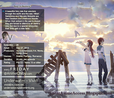 Synopsis: A beautiful fairy tale that wanders through the earth and the sea. Hikari Sakishima and Manaka Mukaido are Sea Dwellers and childhood friends. When their school in the sea is closed they are forced to attend to an earth's one, but due to a special encounter, their lives gain a new twist.